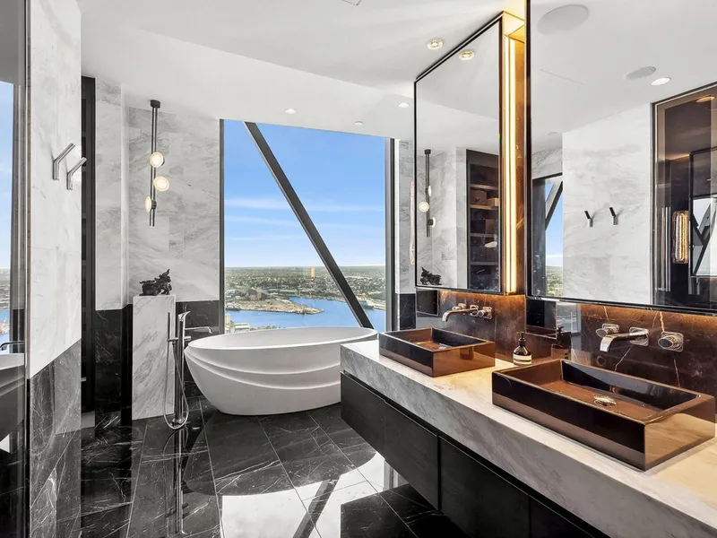 Located within the award-winning Wilkinson-Eyre designed One Barangaroo tower, this spectacular residence sits on level 60, above the sparkling Sydney skyline. Enjoy the panoramic city and harbour views as well as the lifestyle afforded in a residence that is fully integrated within Crown Sydney.