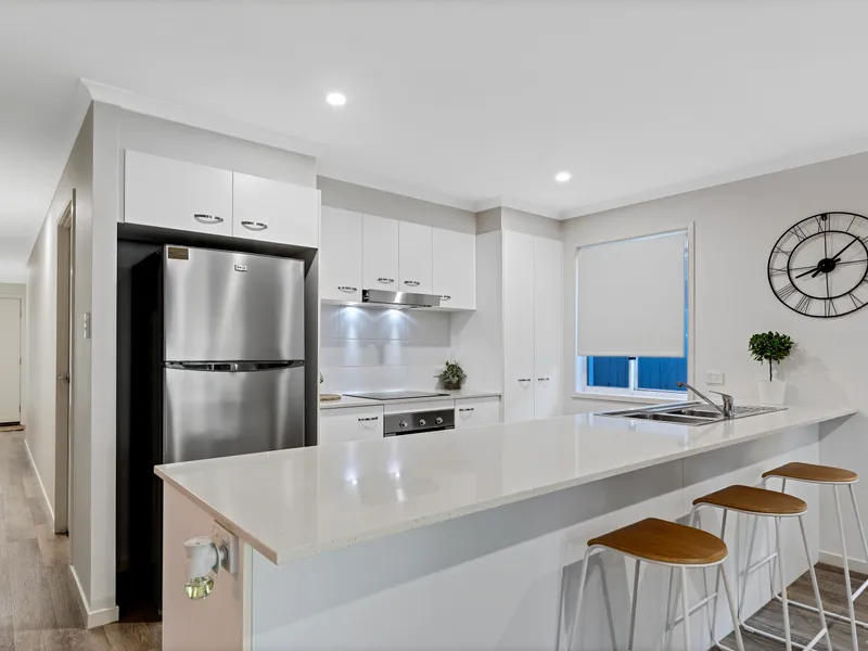 Designed for easy living, the home features a light-filled open plan kitchen, dining and living area that flows seamlessly out to a spacious covered patio-perfect for entertaining or unwinding at the end of the day.