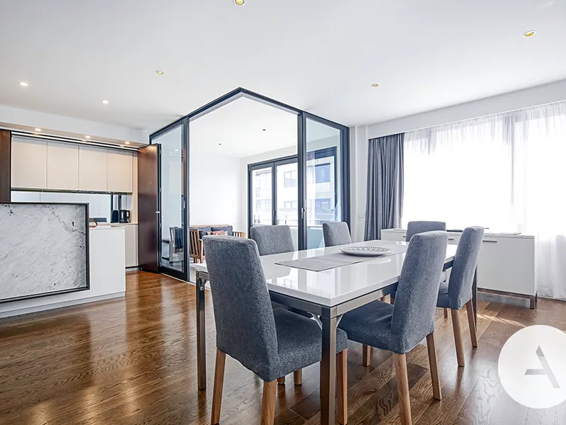 This superbly appointed apartment boasts a fully furnished apartment, where comfort and elegance seamlessly merge. The main bedroom features an elegant ensuite, offering a private sanctuary within your own domain. Indulge in year-round comfort with ducted reverse cycle air conditioning, ensuring the ideal temperature regardless of the season is a truly opulent living experience in the heart of Canberra's.