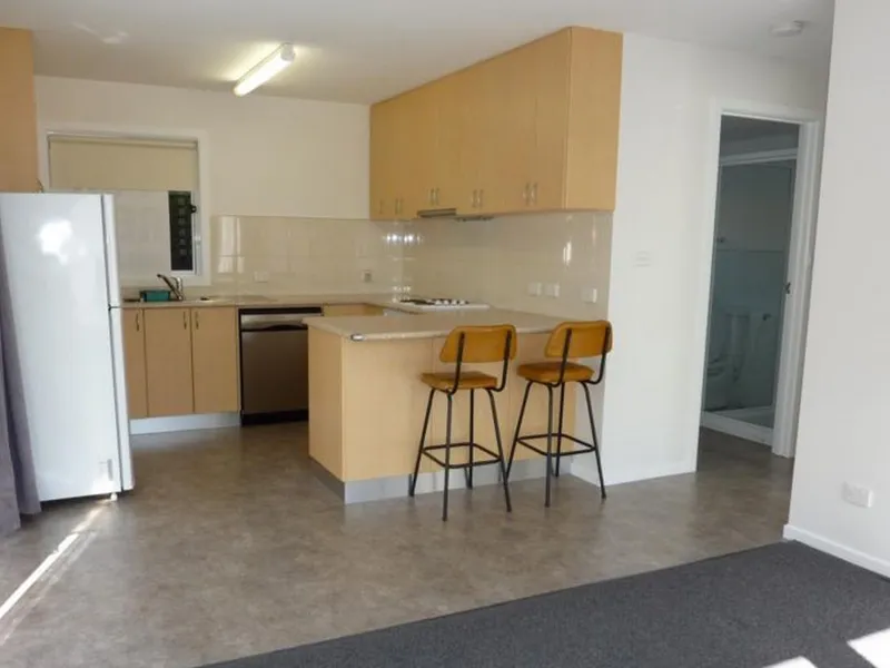 Enjoy this very clean ground floor flat and it does include 2 retro kitchen bar stools and a wooden queen bed base (bring your own mattress).