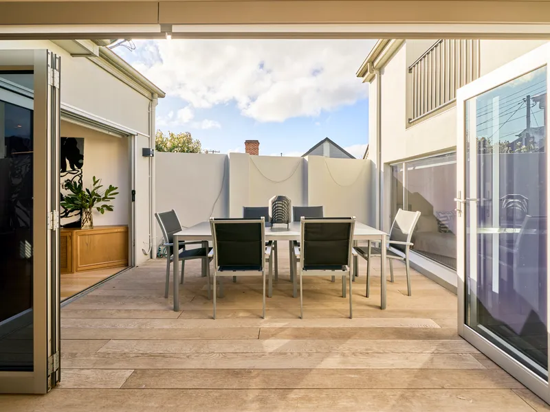 • Private, outdoor entertaining area with bi-fold floors, allowing for a beautiful open space atmosphere