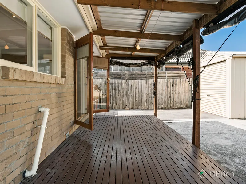 French doors enhance the indoor-outdoor connection, opening onto an expansive alfresco deck and a generous backyard, perfect for children and offering plenty of space to relax or play.