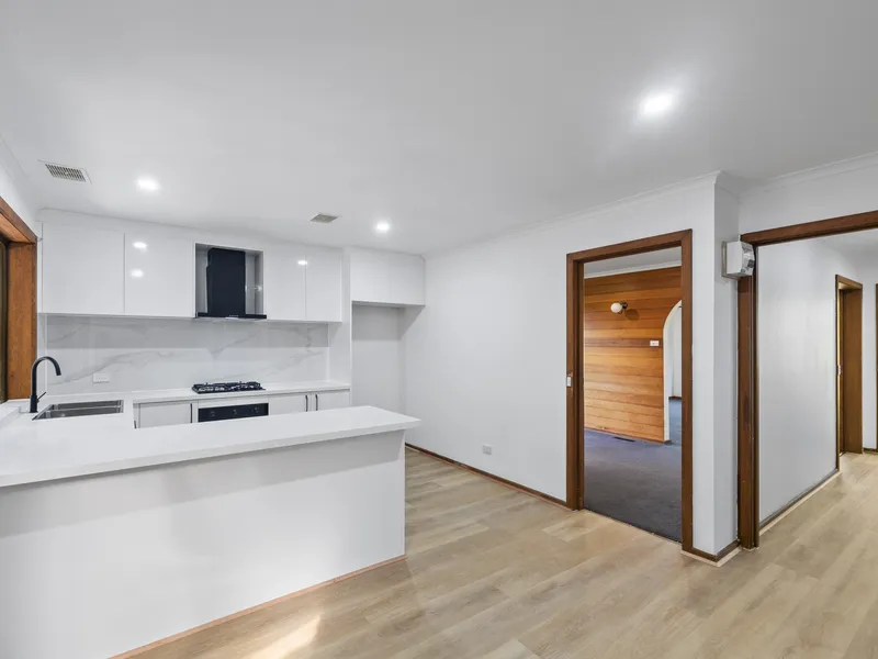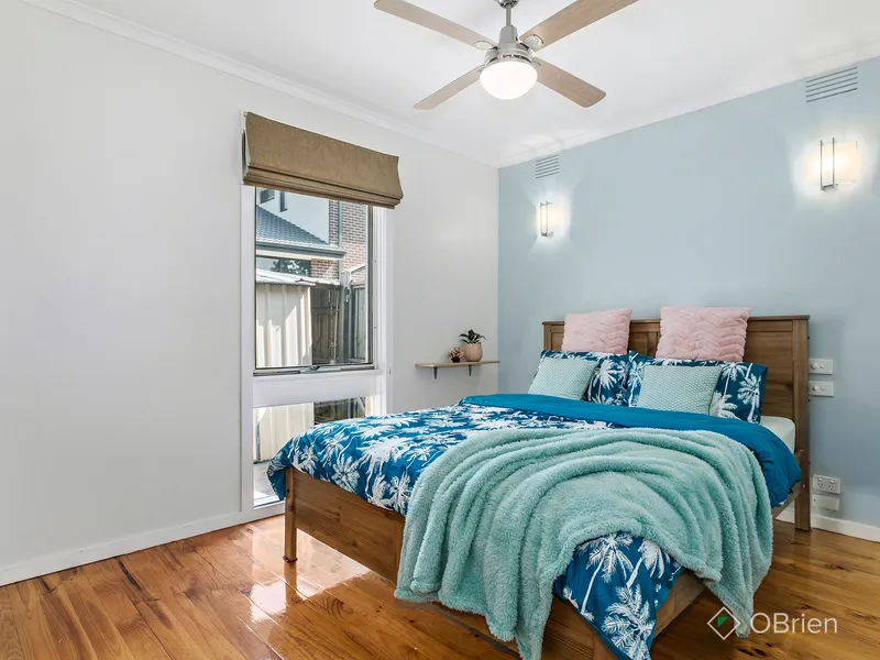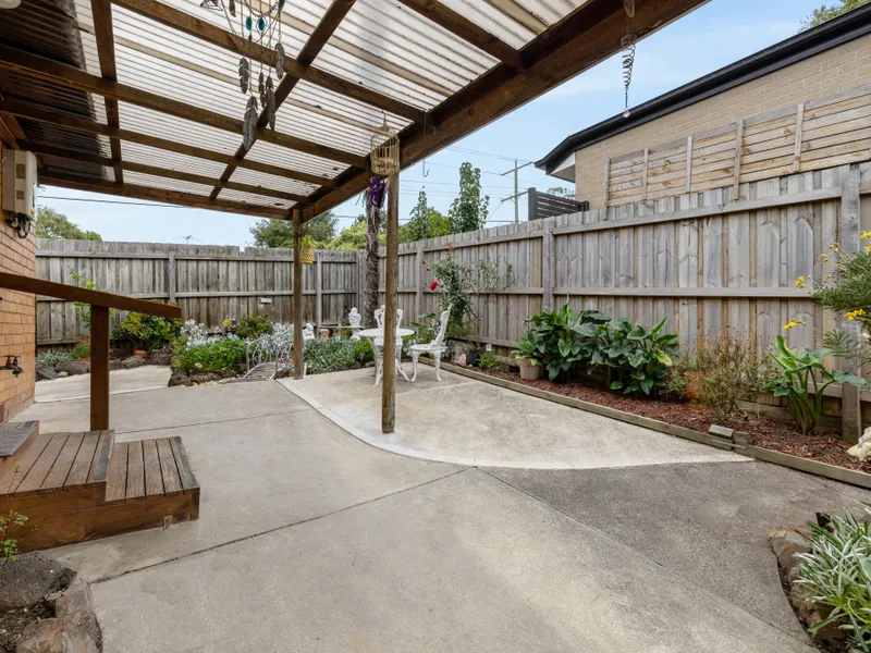 This lovely unit offers a private and peaceful sanctuary, combining a low-maintenance interior with an unexpectedly spacious backyard. From the entry foyer, the home flows through to a light-filled lounge featuring polished floorboards, leading into a dining area and a well-equipped kitchen complete with a 5-burner gas stove and Westinghouse oven.