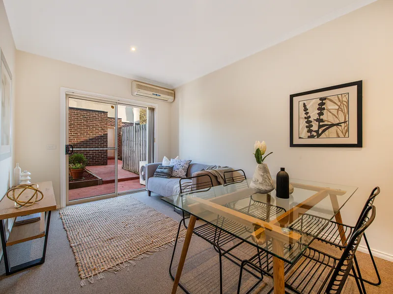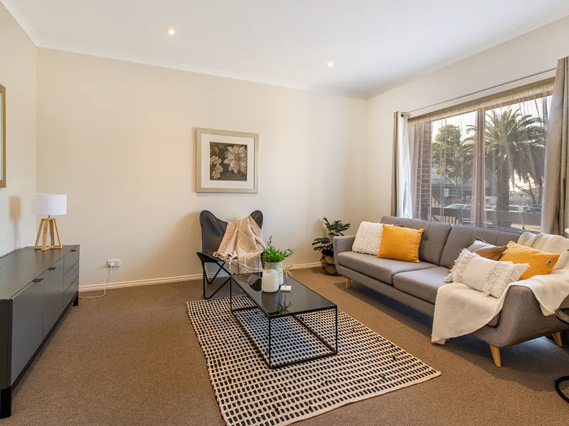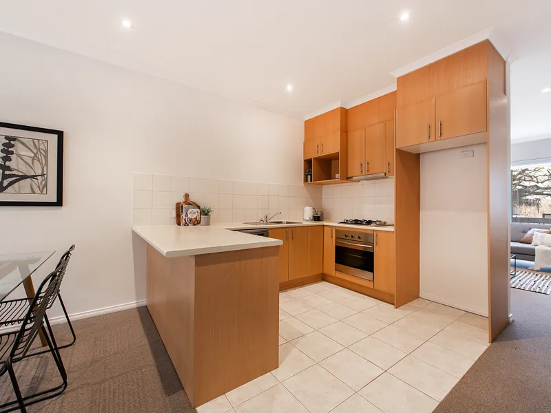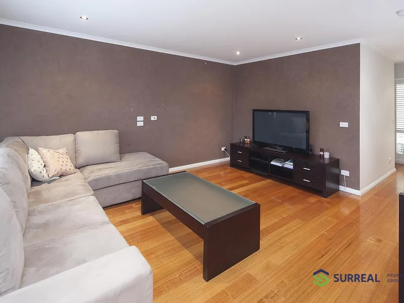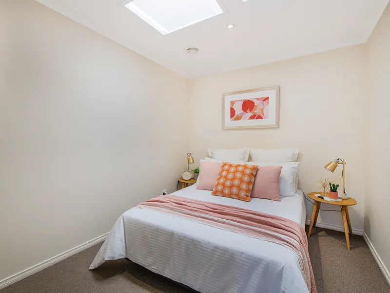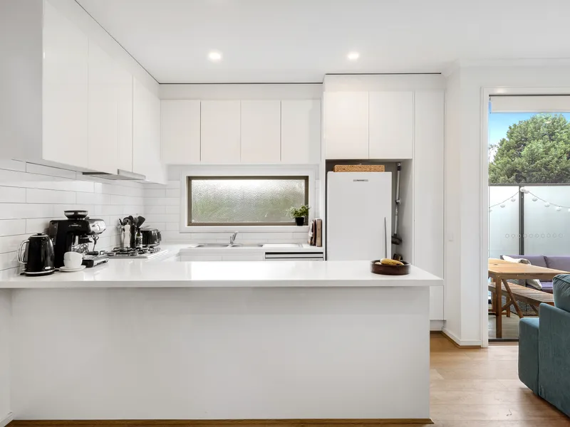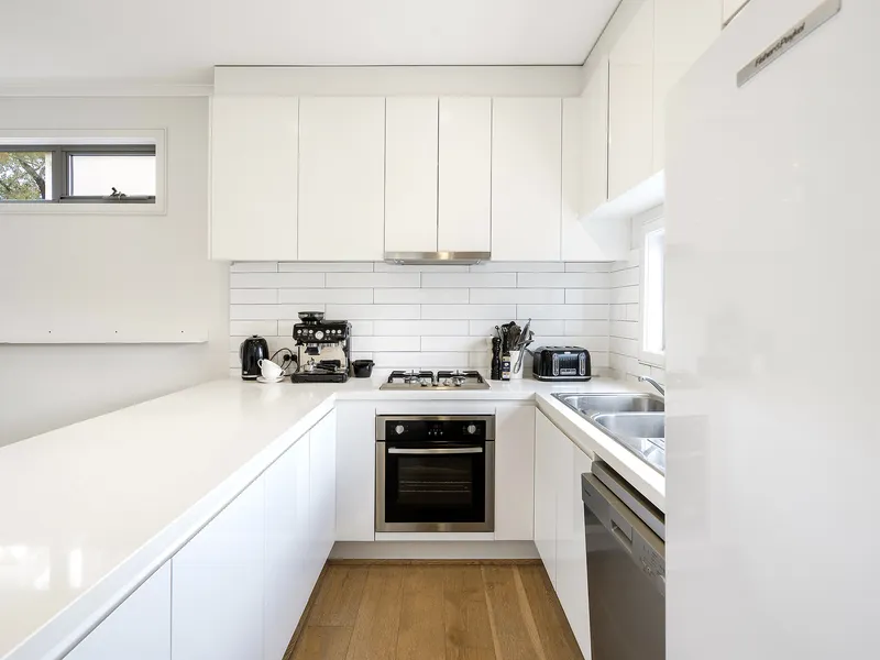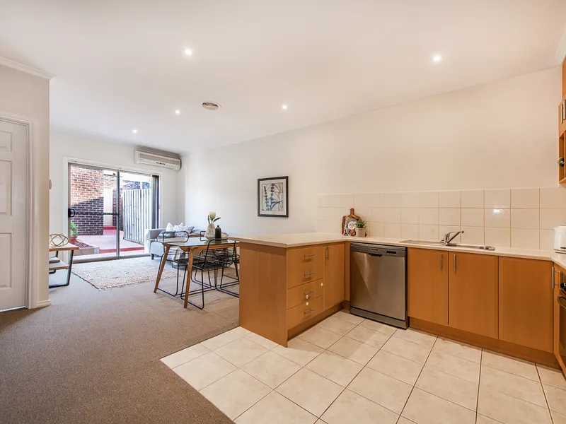 Behind its stylish façade you find a lounge room, family/meals area and a pristine kitchen with stainless appliances.