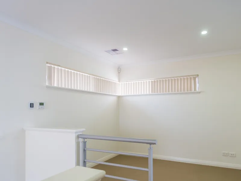 At the top of the stairs is a bonus space ideal for a retreat, study or an extra living room. The main and second minor bedrooms are located upstairs and have mirrored built in robes with the third on ground level. There is one bathroom per bedroom, and the main has a dedicated ensuite with a double vanity.