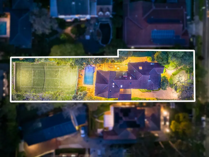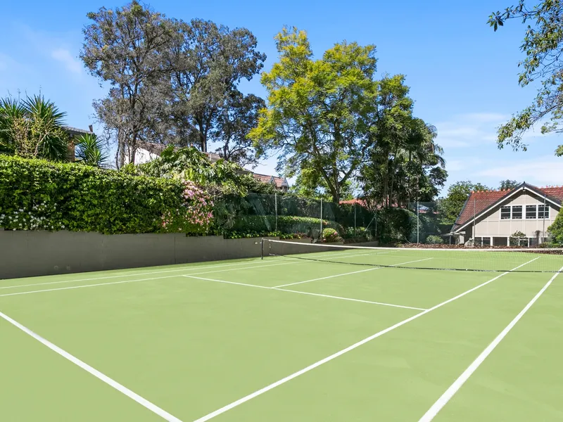 Serenely nestled by the leafy embrace of esteemed Copeland Road, 'Glendalough' is a captivatingly beautiful estate. Its lavish proportions and ornate character combine with the modern functionality of a flexible six-bedroom layout, crowned at the rear by a north-south poolside tennis court. A significant character home in a highly sought-after precinct, just 350m (approx.) from Beecroft Public, and 600m from the leisure of Pennant Hills Golf Club.