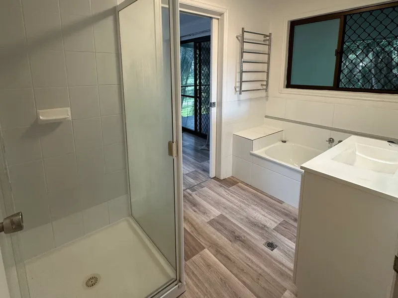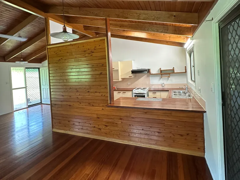 This home is situated in a secluded location on acreage; close to Beerwah township, railway, cafes and schools. The home offers plenty of outdoor space and has a fully enclosed rear verandah 42sqm. Open plan living with ceiling fans throughout.