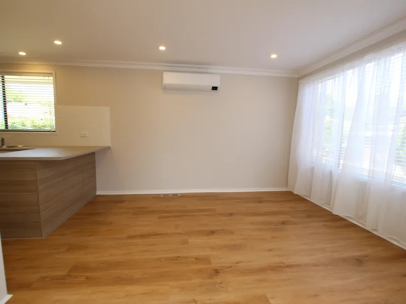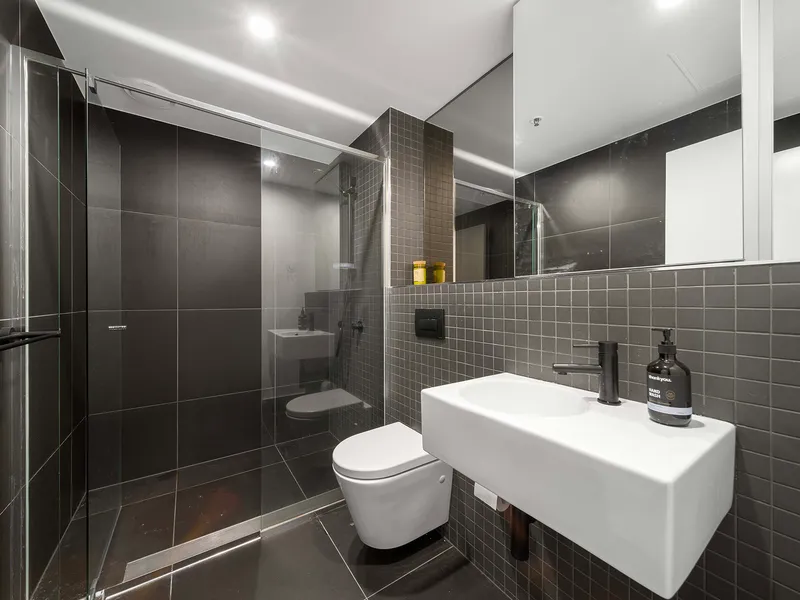 The kitchen is sleek and modern, finished with stylish benchtops and ample storage, offering a functional and elegant space for preparing meals and hosting guests. The bedroom is a comfortable retreat with a built-in robe providing generous storage, while the bathroom presents a clean and contemporary design with quality finishes.