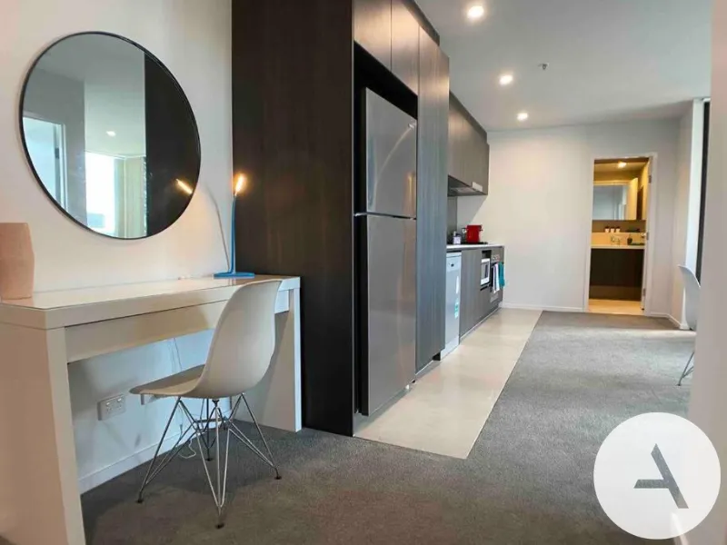 As you first enter, you are greeted with a large open-plan living and dining space, where generous windows fill the area with abundant natural light. Extended to the left of the living space, there is a study area, perfect for working from home or utilised as extra storage space. The sleekly modern kitchen offers a refined look featuring Bosch appliances such as an electric cooktop, oven and dishwasher, as well as boasting ample bench space. The sunny bedroom has the convenience of mirror-fronted built-in robes adding to the spacious feel, and an elegant bathroom with semi-frameless shower screen & floating vanity completes your urban retreat.