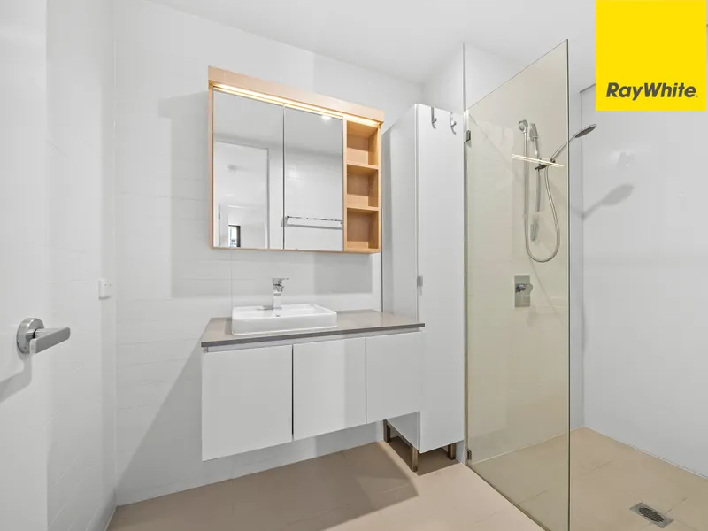 Both bedrooms are generously sized and equipped with built-in robes for streamlined storage. The main bedroom has lovely views of Belconnen & access to the balcony. The chic bathroom has full-height tiling, a wall-hung vanity with a mirrored shaving cabinet, a slim side cupboard for additional storage and a bonus separate powder room.