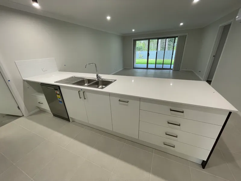 - Open plan kitchen with stone benches, stove, oven and dishwasher perfect for
