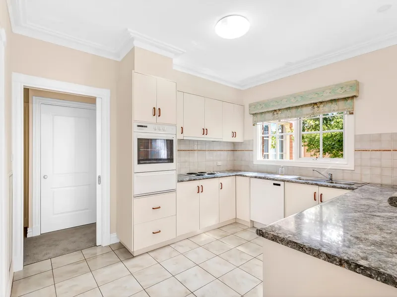 Step inside to a welcoming entry leading through to a spacious lounge, while the fully equipped kitchen impresses with state-of-the-art appliances including a brand new Asko dishwasher, St George oven and stove, ample cabinetry, and a walk-in pantry. The adjoining dining area enjoys lovely outlooks across the spectacular established gardens.