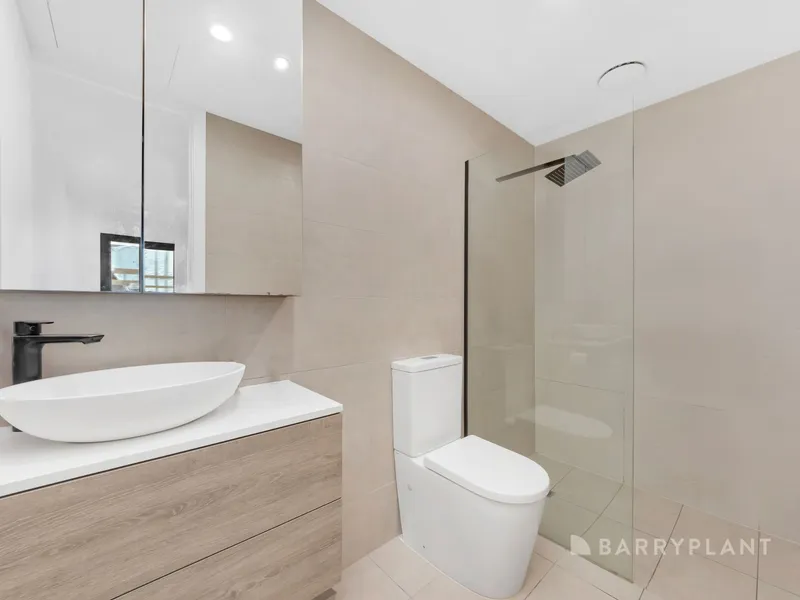 The master bedroom features a walk-in robe and ensuite, while the second bedroom has a built-in robe. Both bedrooms enjoy access to their own private balconies, creating bright and airy retreats. A sleek, modern bathroom with quality fixtures completes the home.