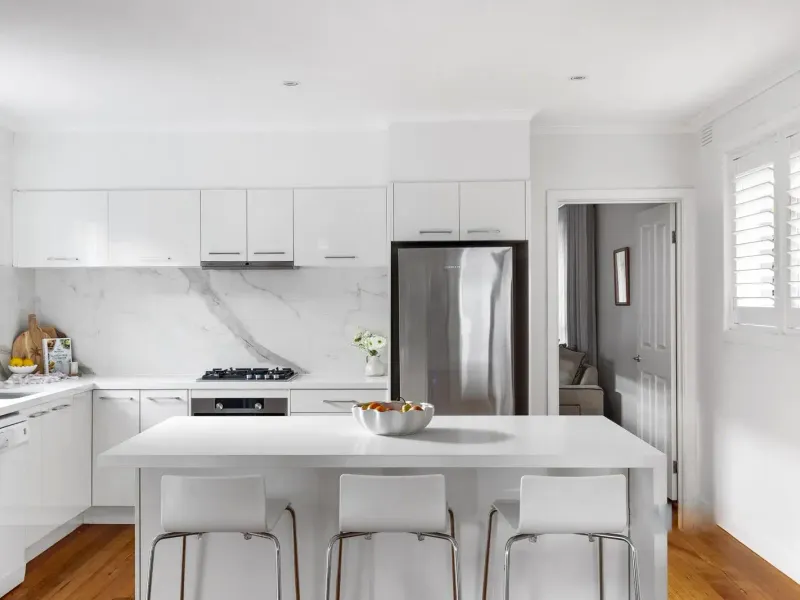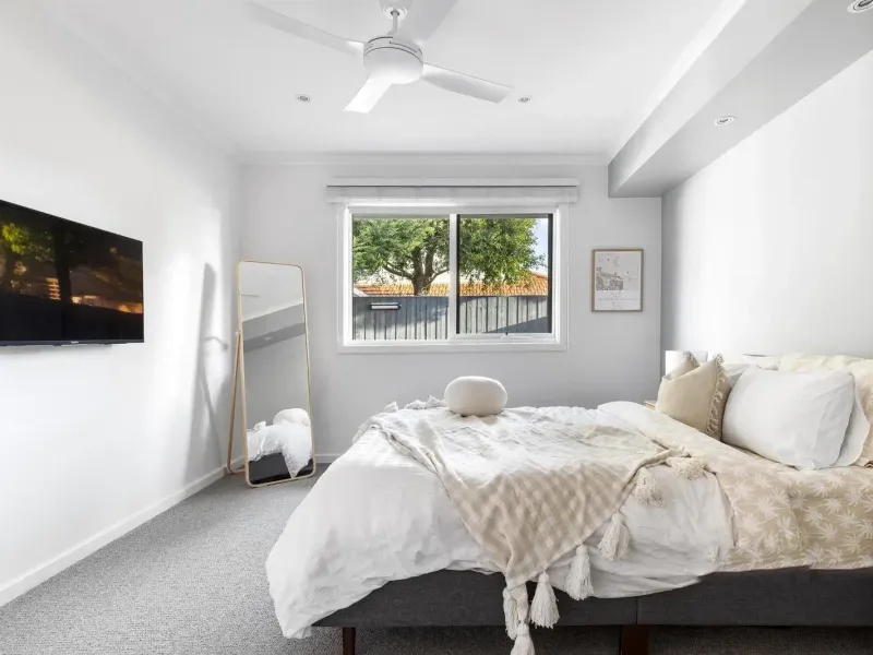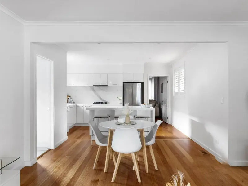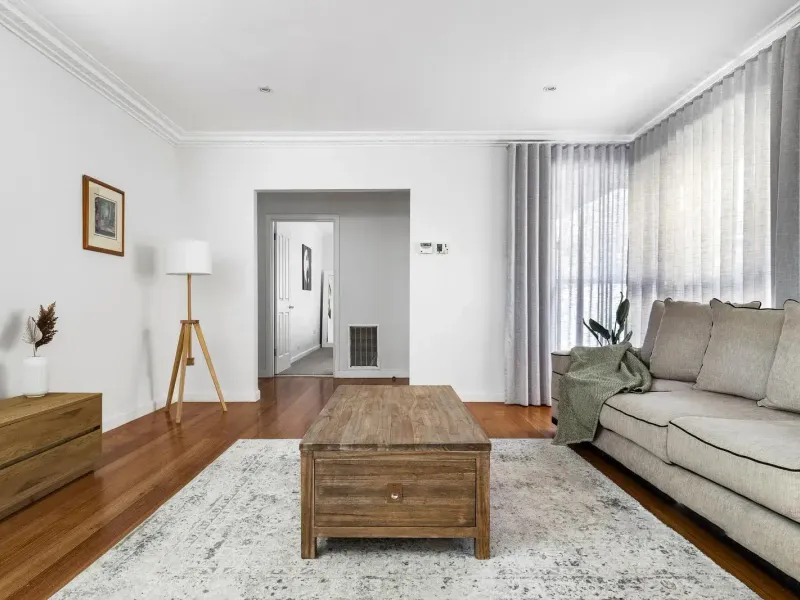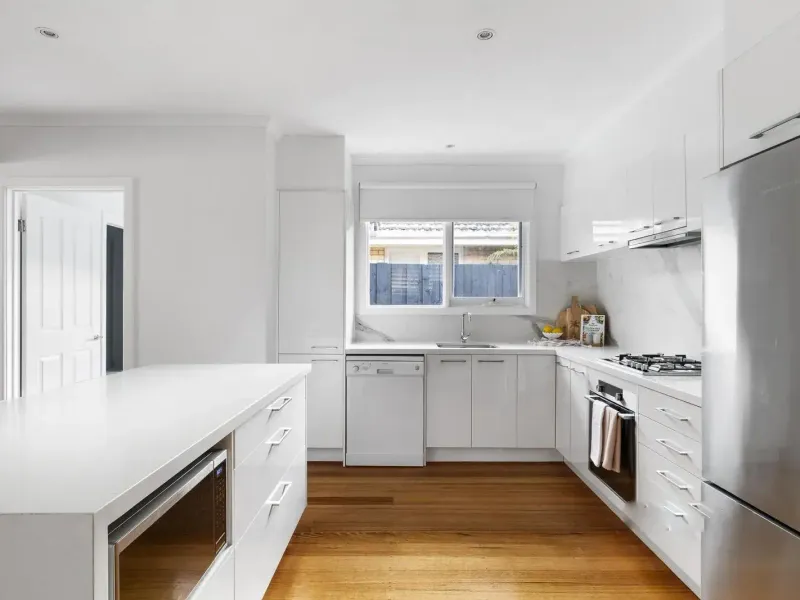 Fresh, light-filled interiors are complemented by the warmth of Australian hardwood floors, creating an inviting and modern family environment. The home features a generous open plan living and dining area, alongside a premium white kitchen equipped with quality Siemens and Asko appliances, ideal for everyday living and entertaining. A separate spacious lounge provides additional flexibility for families.