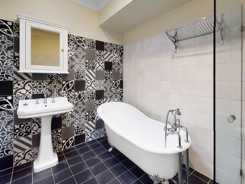 Master bedroom with walk-in robe and sleek ensuite (floor-to-ceiling tiles)
