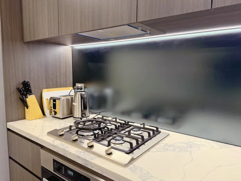 - Neat kitchen with gas cooking and ample cupboard space