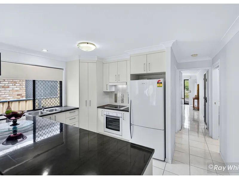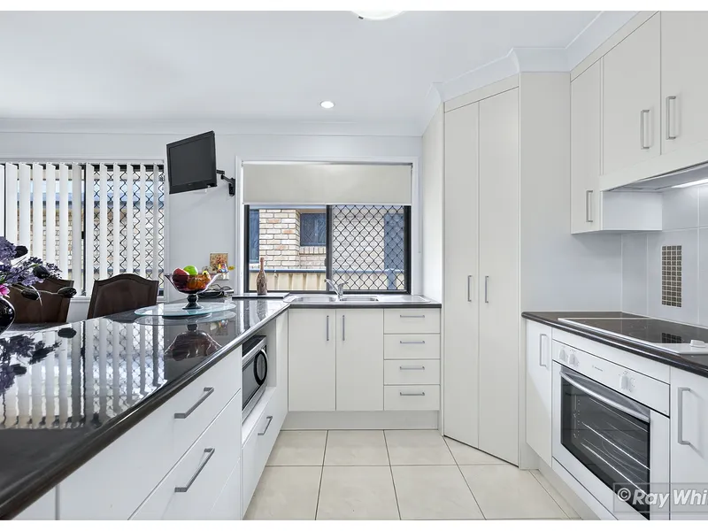 • A thoughtfully designed kitchen with ample bench space and storage, overlooking the dining area