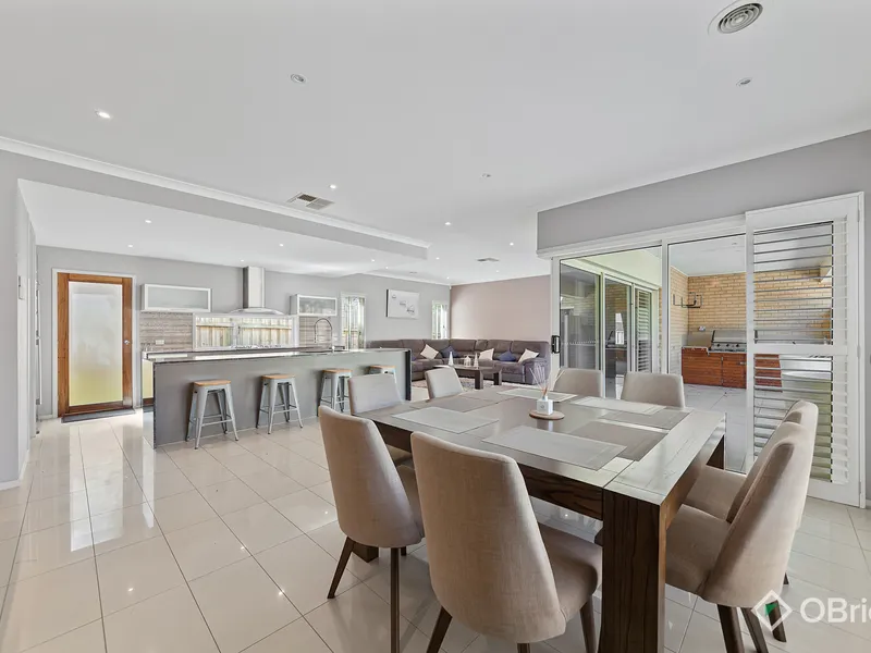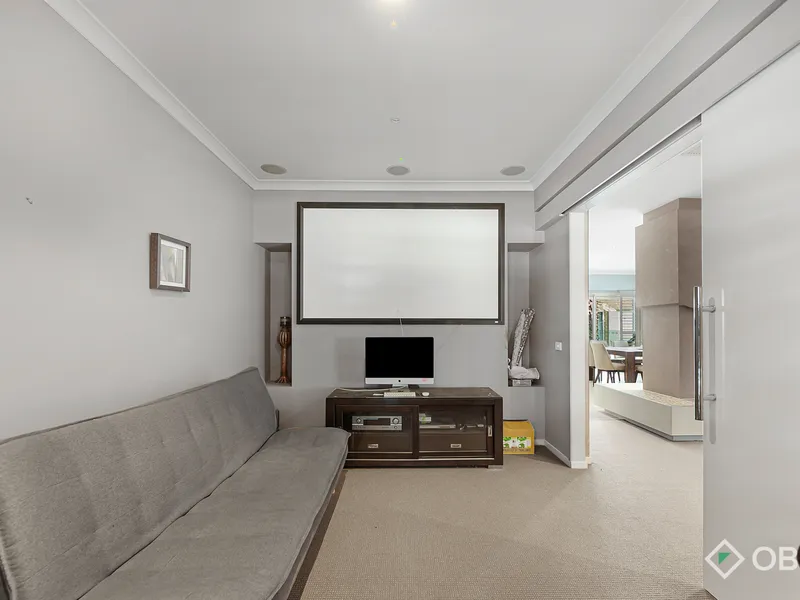 The master bedroom includes separate his and hers wardrobes and a spacious ensuite, while the remaining bedrooms are well-sized and serviced by a central bathroom. Multiple living areas provide flexibility for families, including a formal lounge upon entry, a spacious main living zone and a dedicated theatre room.
