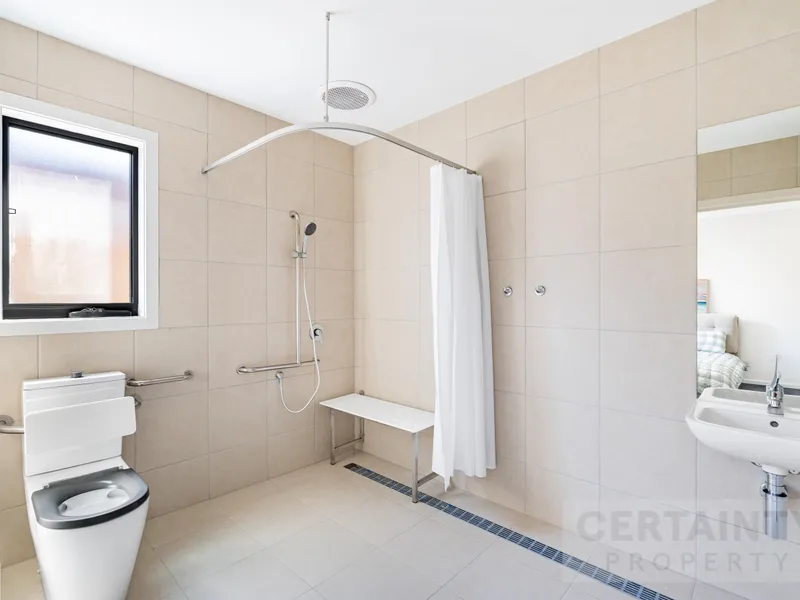 The home includes an accessible bathroom suitable for residents with mobility needs, making the property inclusive and practical for a variety of tenants.