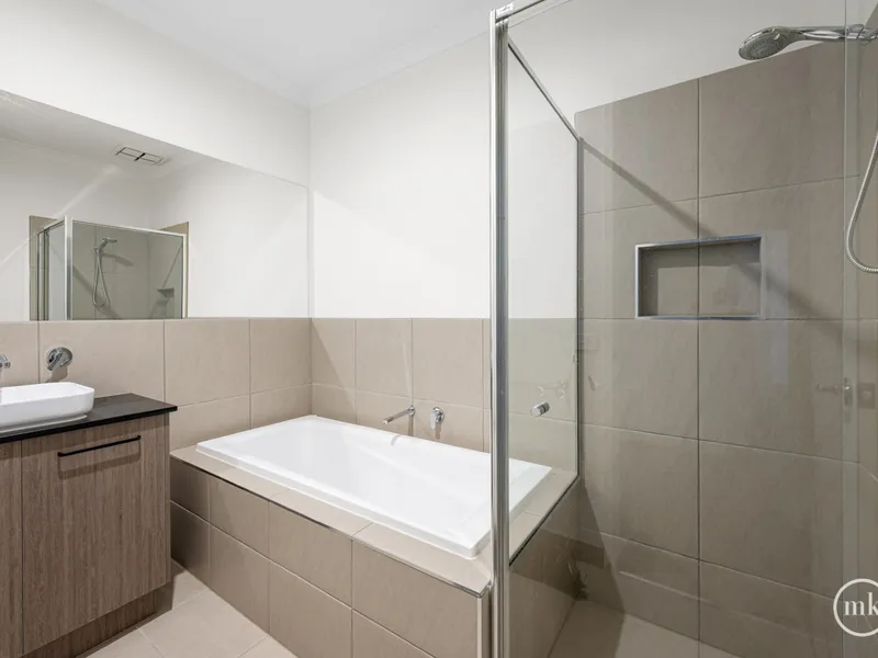 This beautifully presented four-bedroom home offers space, comfort and quality finishes throughout. The modern kitchen is the heart of the home, featuring stone benchtops, a 900mm oven, dishwasher and a walk-in pantry, making it ideal for families and those who love to cook. Timber floors flow throughout the property, complemented by feature lighting over the meals area and downlights throughout for a contemporary feel.