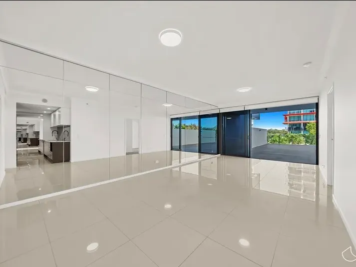 *Open Plan Design bathed in natural light, porcelain tiles and feature mirrored wall