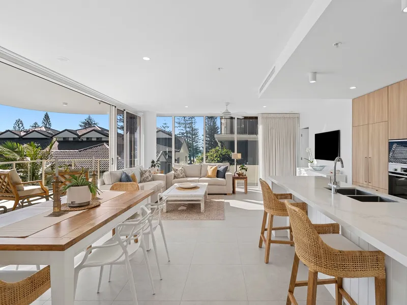 Embrace the serene lifestyle of beachfront living, with the golden sands of Bilinga Beach just steps from your front door.