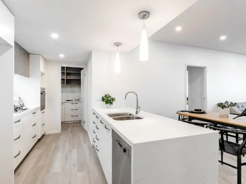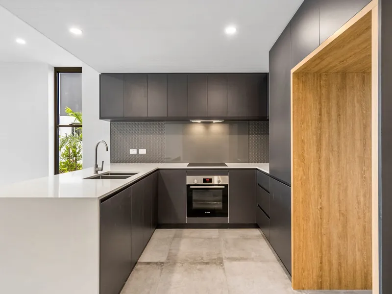 This light-filled unit features a contemporary open-plan layout with seamless flow between the living, dining, and kitchen areas. The modern kitchen is well-appointed with quality appliances and ample storage, making everyday living easy and enjoyable.