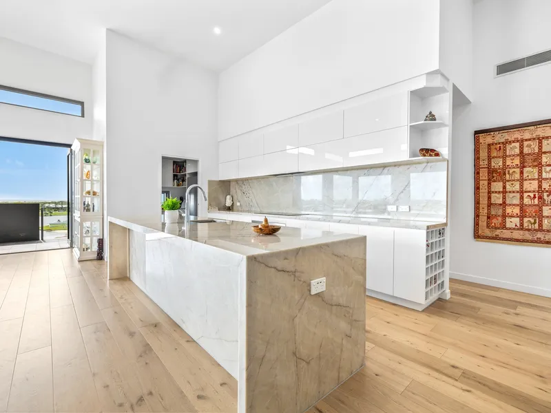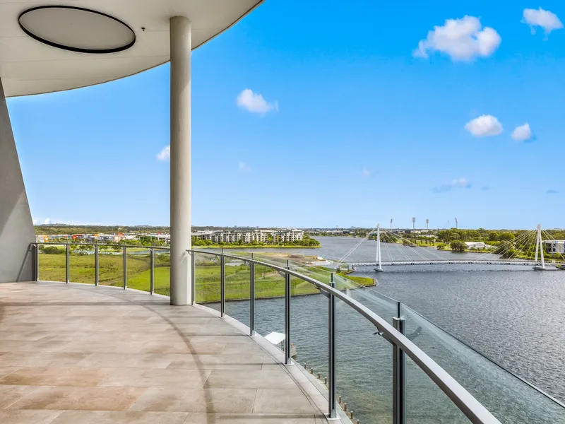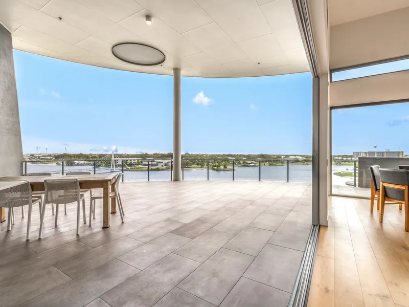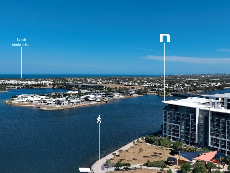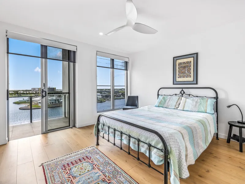 Showcasing a contemporary design, premium finishes and sweeping water vistas, this is coastal living at its most refined. Thoughtfully designed to maximise natural light and seamless indoor–outdoor flow, the open-plan living and dining areas extend effortlessly to a generous balcony creating the perfect setting for entertaining guests or simply unwinding while soaking in the uninterrupted views of the sparkling waterways and distant hinterland peaks.