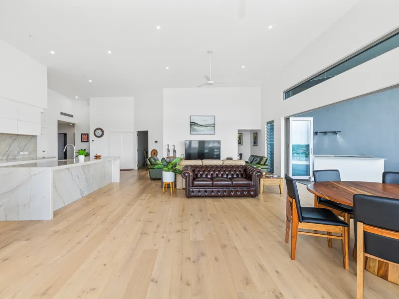 Positioned high above the water in the prestigious Waterside Retreat, this sophisticated fully furnished penthouse residence delivers an exceptional lifestyle in the heart of Birtinya. From its elevated vantage point, the home captures breathtaking panoramic views stretching across the coastline to Mount Coolum and south toward Caloundra, creating a spectacular backdrop from sunrise to sunset.