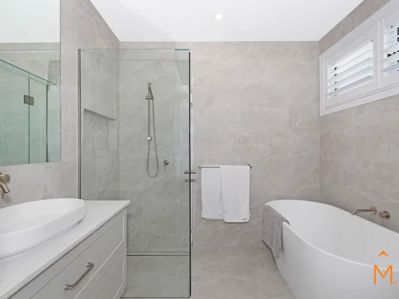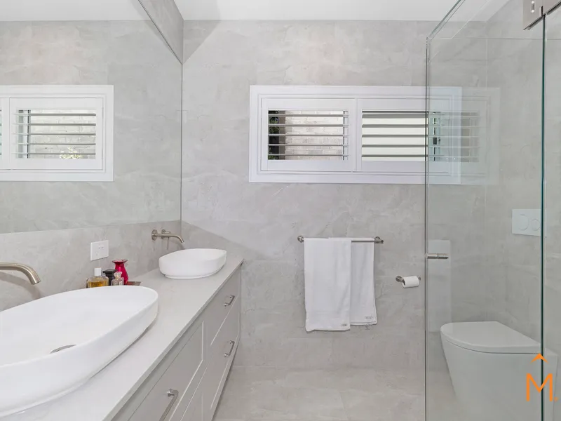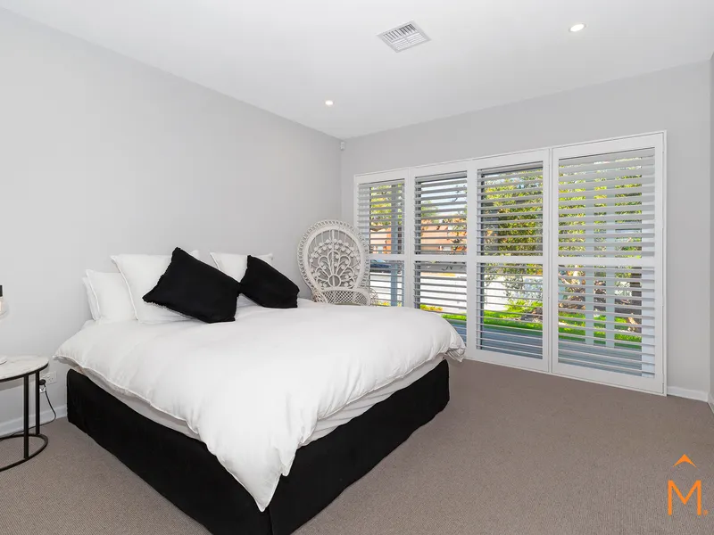 The master suite features a deluxe ensuite and walk in robe, complimented by an adjacent fifth bedroom with robes that could easily be used as a home office.