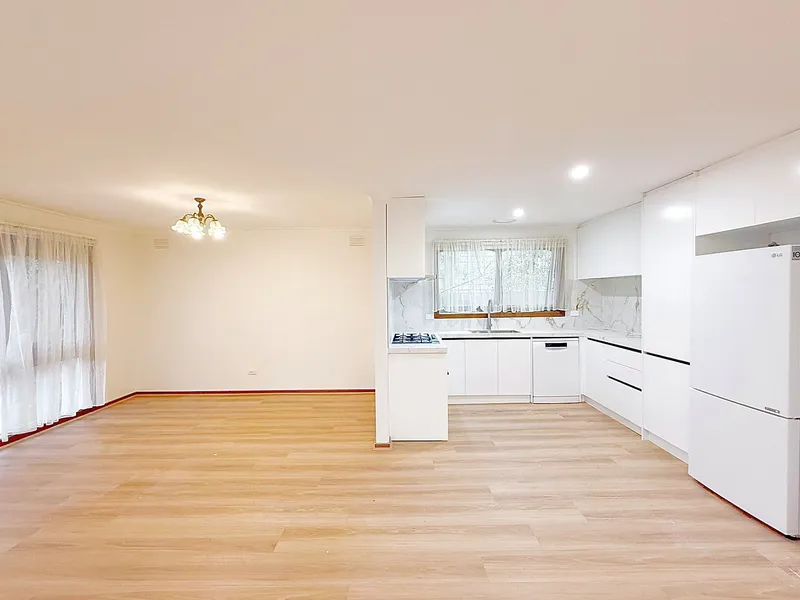 The light-filled interior showcases a thoughtfully updated layout with spacious living and dining areas, complemented by a modern kitchen featuring ample storage and quality appliances, perfect for everyday family living and entertaining.