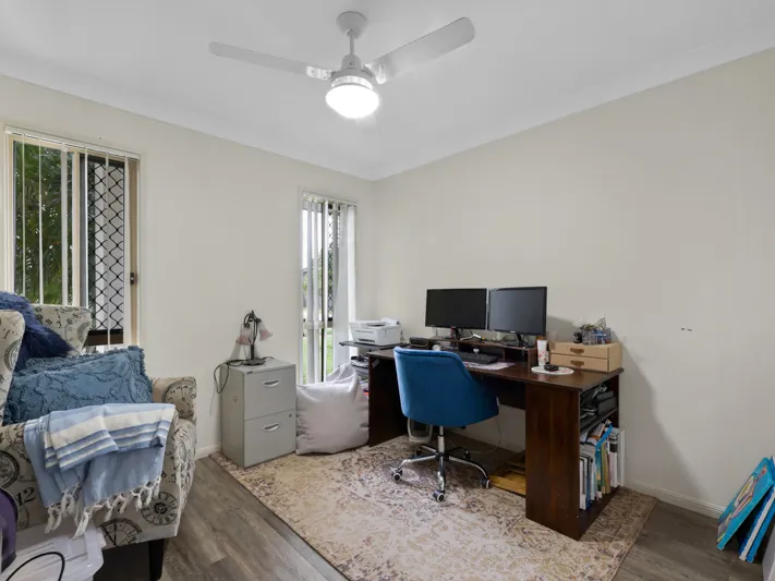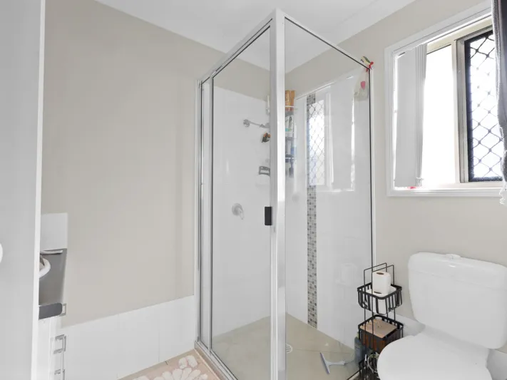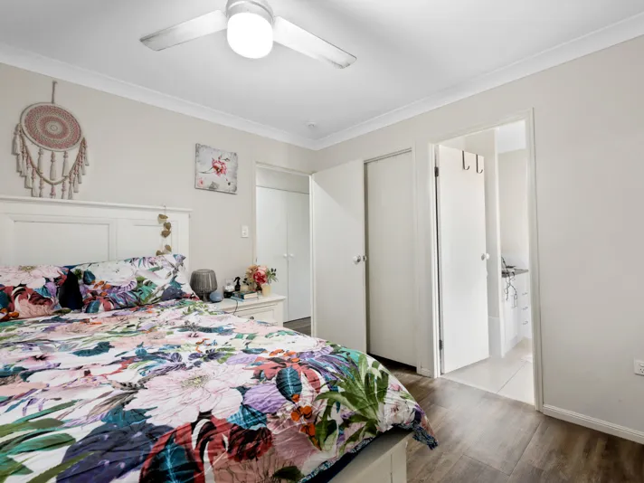 Enjoy comfortable air-conditioned living and dining, plus a modern kitchen with electric cooking and a dishwasher. The main bedroom features an ensuite, walk-in robe, and its own air conditioning for ultimate comfort. Two more bedrooms come with built-in robes and ceiling fans, perfect for family or guests.