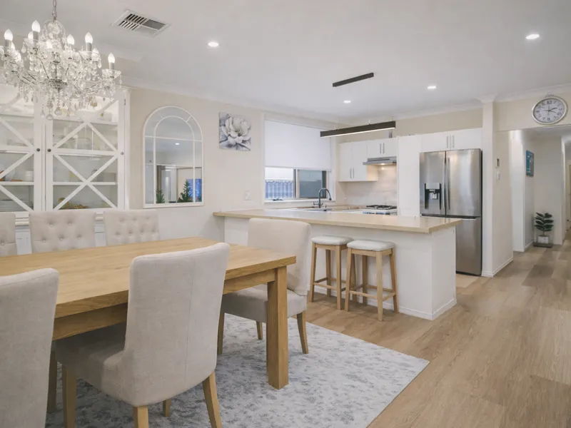 Inside, the energy is calm and contemporary. Neutral tones pair effortlessly with floating floorboards and natural light, creating a home that feels instantly welcoming. The generous open plan living zone is the true heart of the property, flowing to a covered verandah designed for entertaining, weekend barbecues and easy evenings at home. Add in 13.5kW solar with battery storage and you have a smart, future-ready home built for long-term comfort.