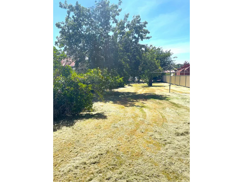 - Large partially fenced backyard