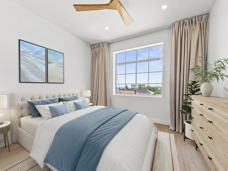 Set within the iconic Pacific building on Campbell Parade, The Pacific Executive is a rare two-level Lighthouse residence offering refined beachside living with complete privacy. Light-filled interiors flow seamlessly to an expansive wrap-around rooftop garden with peaceful eastern views, creating a true sanctuary in the heart of Bondi. Fully furnished with marble finishes, concierge service, lift access and secure parking, this residence is ideal for executive stays or extended coastal escapes.