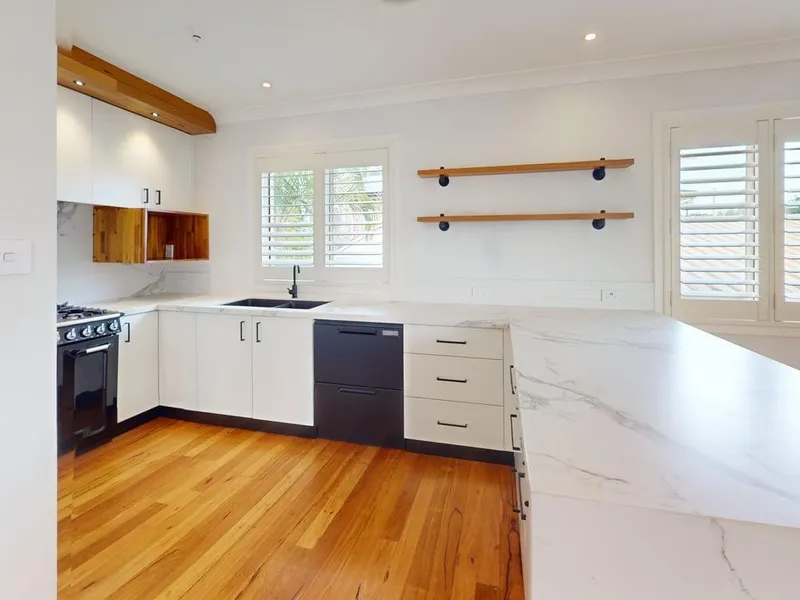 This elevated four-bedroom home boasts Lake Macquarie views from the front veranda, complete with a gas bayonet, ideal for entertaining. It features open-plan living and dining, a kitchen with a Smeg gas appliances, and two renovated bathrooms, including a main bathroom with a separate bath and shower. Plantation shutters adorn every room, and there is ample storage throughout. Additional highlights include a double garage with a workshop, ducted air conditioning throughout and a fully fenced, low-maintenance landscaped garden. Conveniently located just 1.7?km from Bonnells Bay Public School, 1.1?km from Bonnells Bay Shopping Centre, and 350?m from the boat ramp.