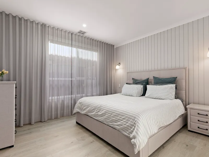 • Luxurious master suite featuring a walk-in robe and a sophisticated private ensuite with floor-to-ceiling tiles, double vanity, 40mm stone benchtop and premium fittings