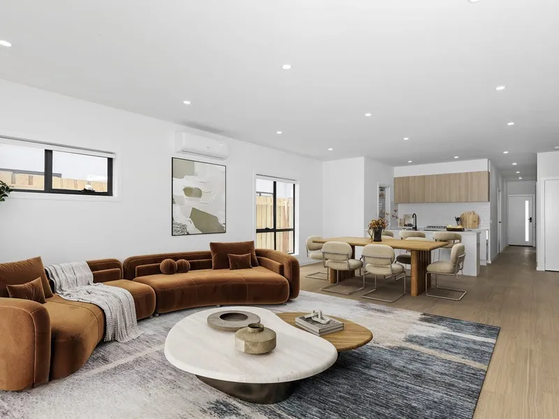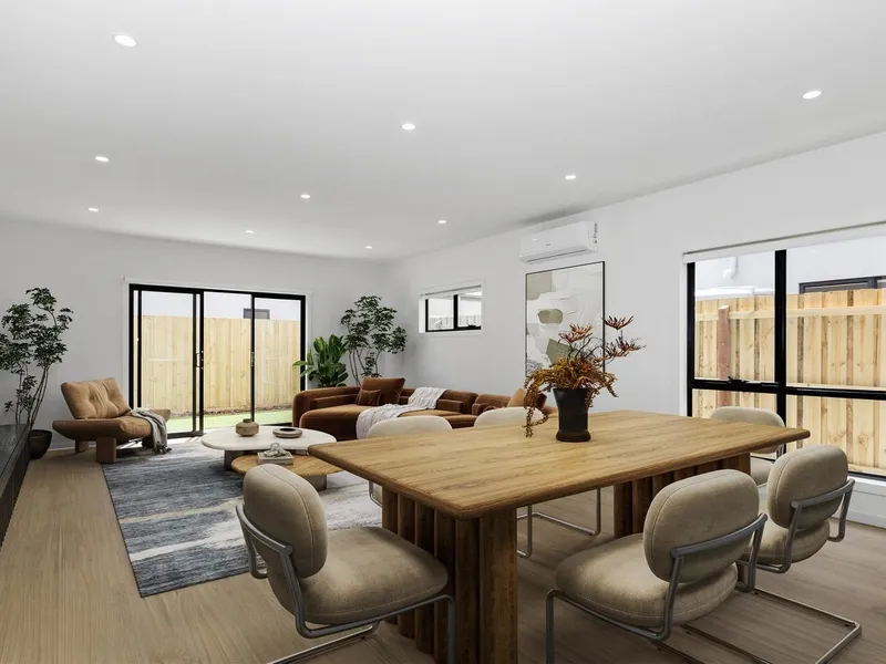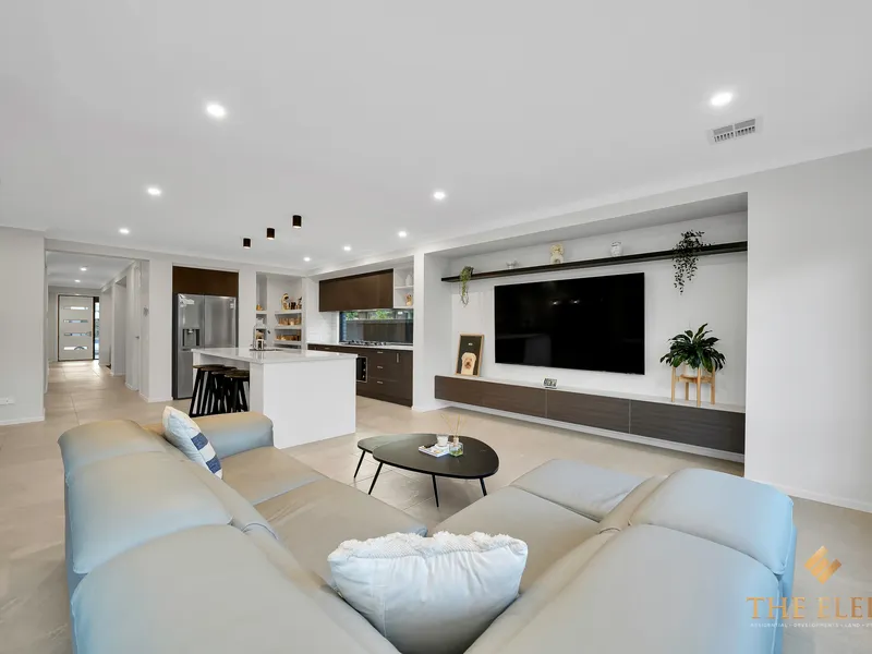 Blending modern style with practicality, this home is perfect for families seeking luxury, space, and high-end finishes. Upon entry, a dedicated study and formal lounge offer quiet spaces for work or relaxation. The open-plan living area is designed for seamless flow, featuring a built-in TV space, custom cabinetry, and large double-glazed windows that fill the room with natural light while maintaining energy efficiency.