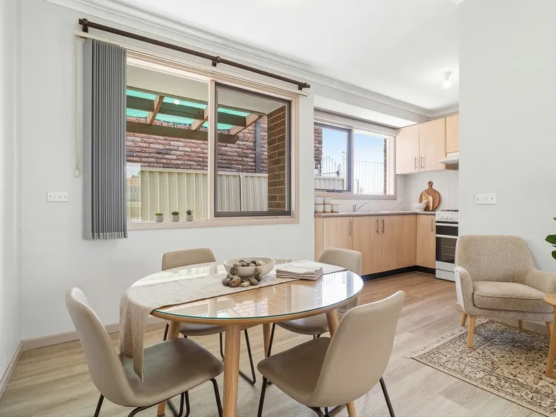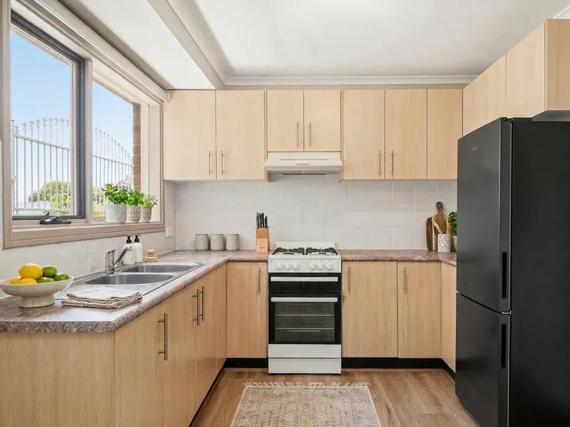 Downstairs is fitted with easy-care tiled flooring, while upstairs showcases brand new timber floors, The kitchen is well-appointed and generously sized, ideal for everyday use.