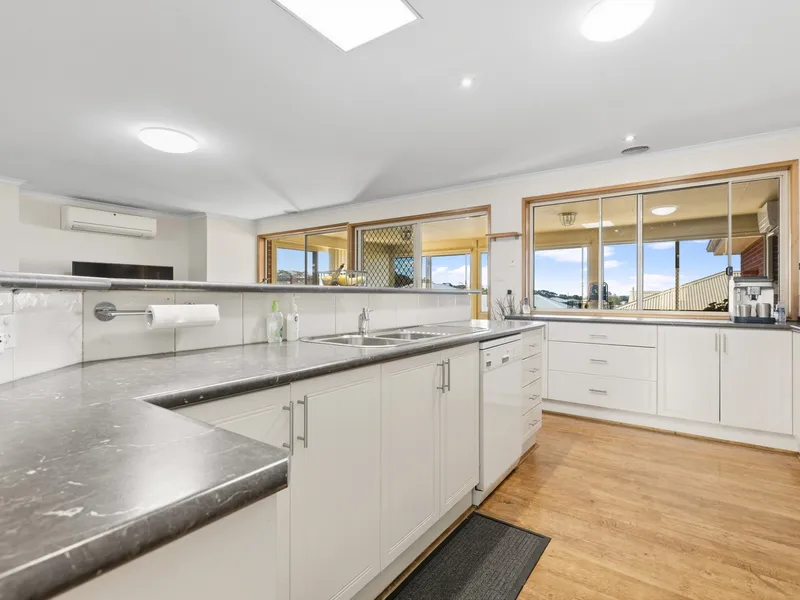 Multiple climate?control options – evaporative cooling, ducted heating, ceiling fans throughout, plus a reverse?cycle split system in the main living.