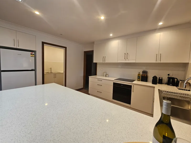 - Kitchen with ample cupboard space and electric cooking