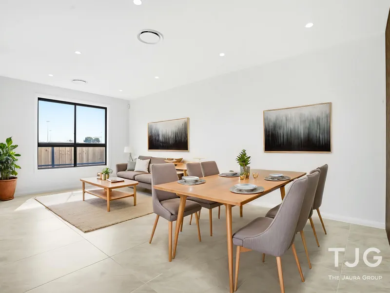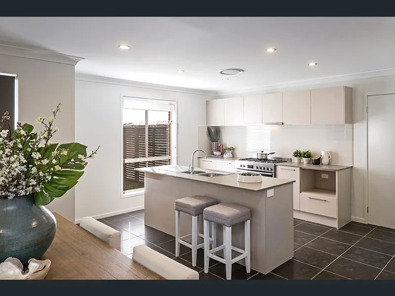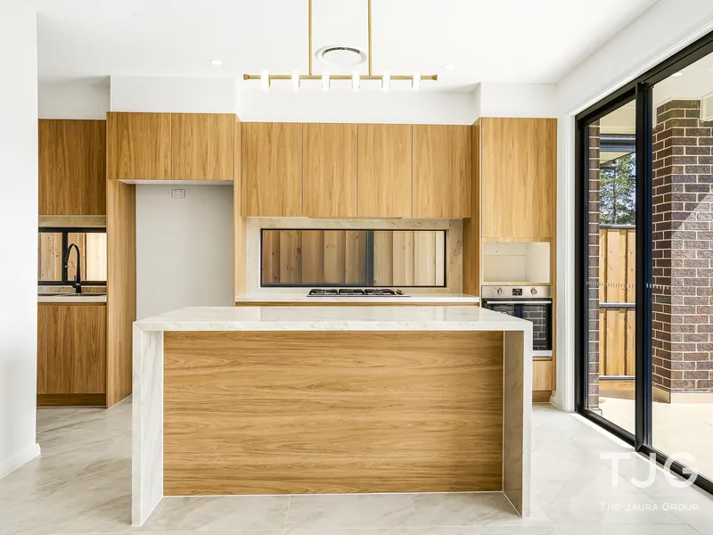 The heart of the home is the contemporary kitchen, thoughtfully designed with a spacious island bench perfect for casual dining, double sinks, a gas cooktop, an integrated dishwasher, and generous storage. Overlooking the open-plan living and dining areas, it creates the ideal space for both everyday living and entertaining guests.