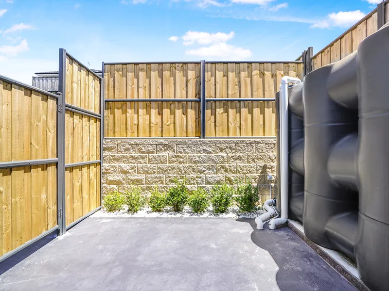 Step outside to a low-maintenance backyard and outdoor entertaining area, ideal for weekend gatherings with family and friends.