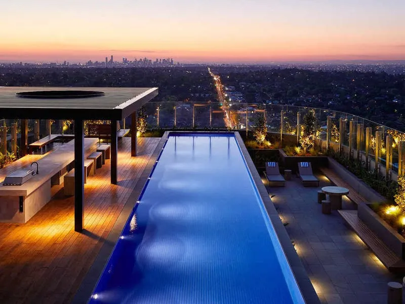 Superior roof top swimming pool and recreational deck including BBQ facilities, fully equipped gym.