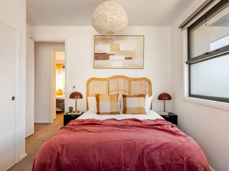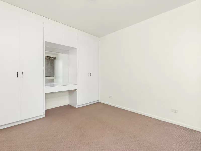 This apartment is an architectural achievement in comfortable living and clever design. The open concept kitchen with stone benchtops, standard gas cooktop, LG fridge and Bosch oven, offers a built-in dining bar that connects to the lovely lounge. The floorplan then flows outward to a spacious private balcony.