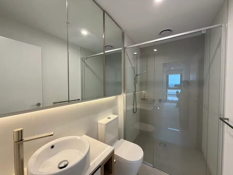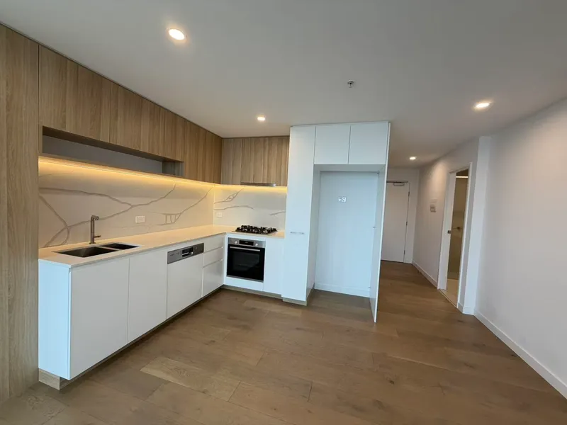 Designed for modern lifestyles, the spacious open-plan living and dining area seamlessly connects to two private balconies, creating an ideal setting for everyday living and entertaining. The well-appointed kitchen showcases premium Bosch appliances, sleek cabinetry, and stone benchtops, all complemented by a sophisticated neutral colour palette.