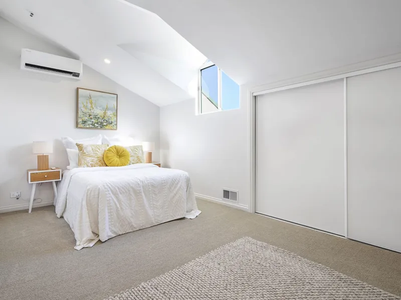 Featuring three generous bedrooms, all complete with built-in robes, the layout is both practical and private. Two bedrooms are located upstairs, each with their own full ensuite. The impressive master suite includes a full ensuite with shower over bath. Downstairs, the third bedroom is serviced by a large separate bathroom – ideal for guests or flexible family living.