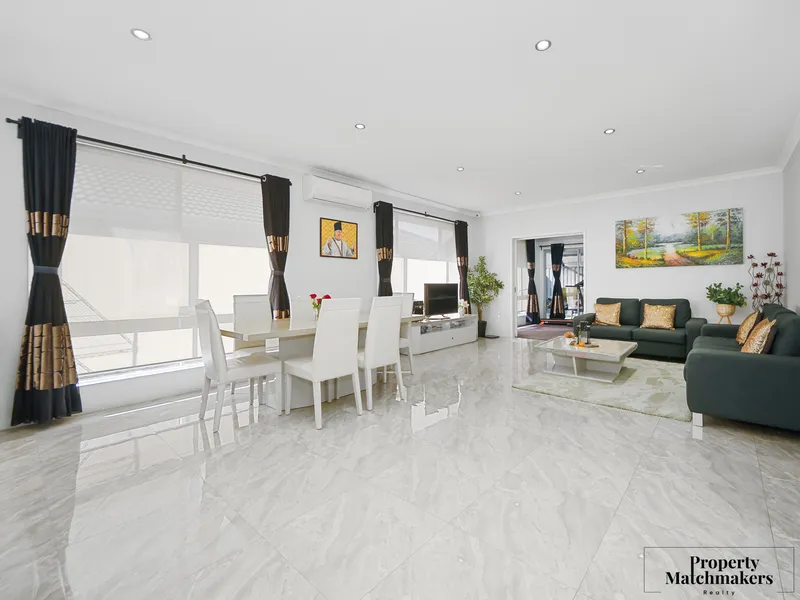 A large master bedroom including an ensuite and walk in 'his & hers' robe, with all other bedrooms including wardrobes. Additionally there is a front activity room and a spacious dining, lounge and kitchen that comes with a breakfast bar and ample cupboard space. The back garden comes with an alfresco which possesses a stylish looking wooden deck on artificial grass. The space is perfect for outdoor entertaining and the kids to play.