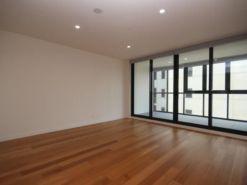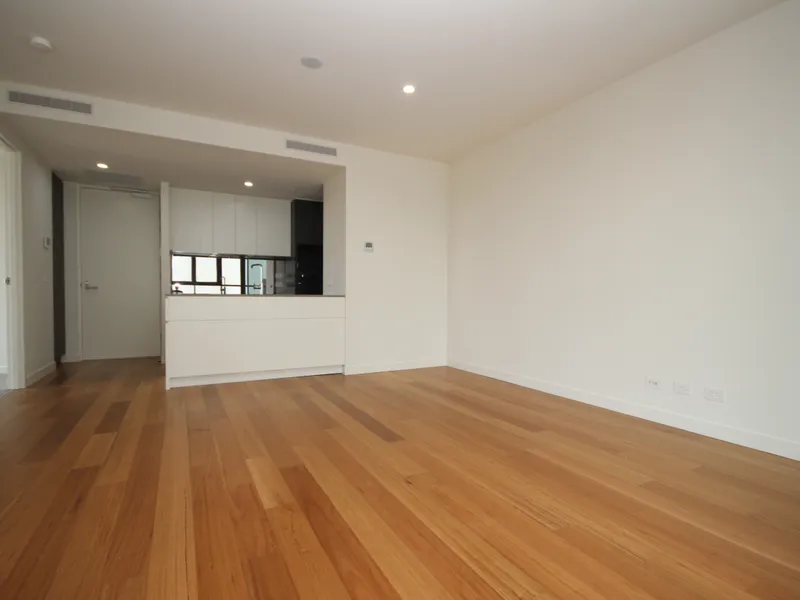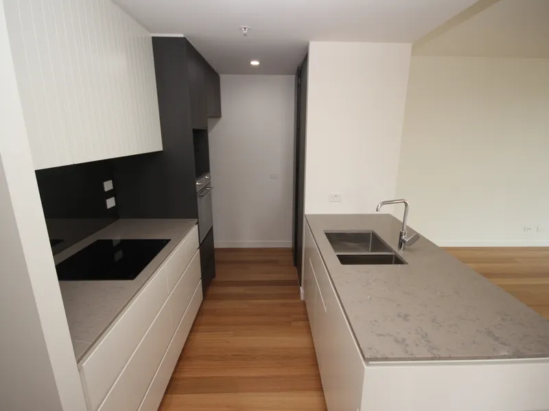 The apartment itself is beautifully appointed with an open plan living space filled with natural light, which flows through to an enclosed balcony/ Wintergarden that creates more living space and adds an easy flow between indoors and outdoors. Floating timber floors throughout the living space add a warm ambiance. The well-appointed contemporary kitchen offers style and sleek simplicity and features a dishwasher, induction cooktop and stone benchtops.