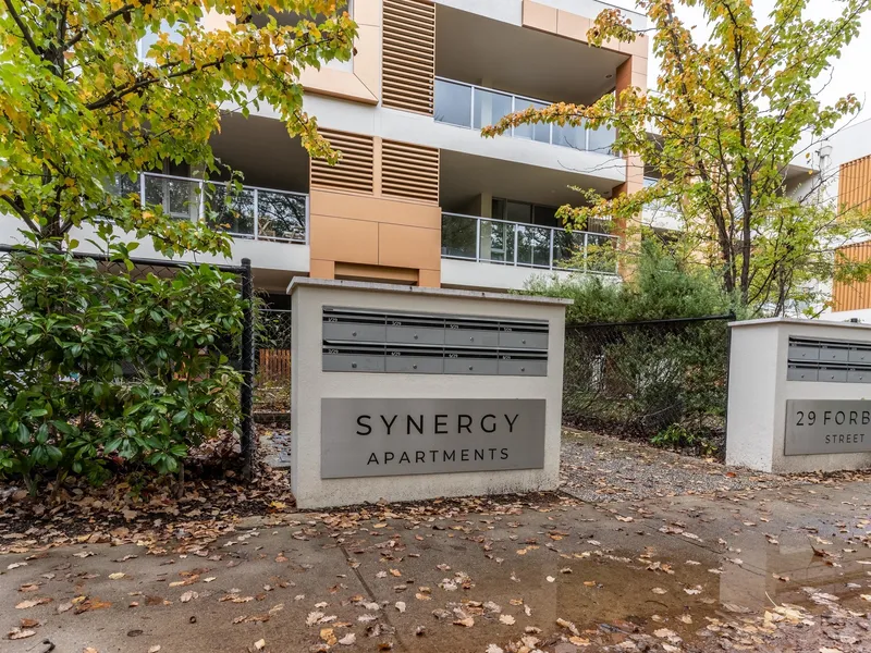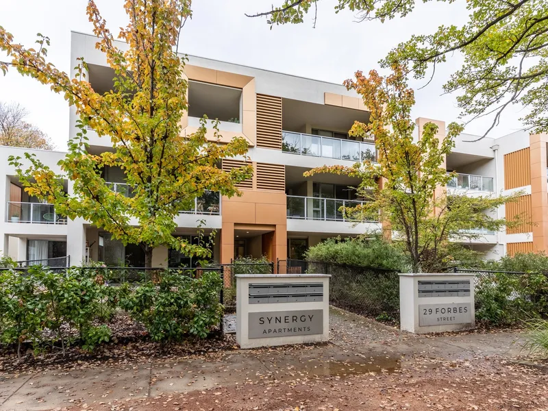 This chic covetable two-bedroom apartment is situated in The Mark complex, the first stage of the Founders Lane precinct in the heart of Canberra City. Here you are perfectly placed to take advantage of all that inner City living has to offer; flanked by the historic Gorman House, the leafy streets of Ainslie and Braddon, and the shopping destination The Canberra Centre. A short stroll takes you to bustling Lonsdale Street with its excellent cafes, bars, and boutique shopping and entertainment.
